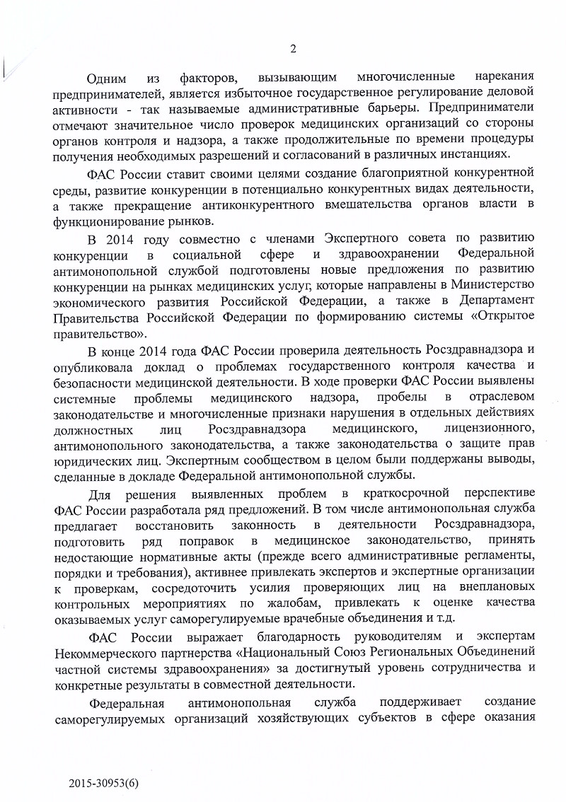 «Для решения выявленных проблем в краткосрочной перспективе ФАС России подготовила ряд предложений, в числе которых разработка поправок в медицинское законодательство и недостающих подзаконных нормативных правовых актов, – отметила Надежда Шаравская. – Мы также считаем, что необходимо начать проводить экспертизу качества медицинской помощи, активнее привлекать экспертов к проводимым проверкам, включать в процесс оценки качества саморегулируемые врачебные объединения».