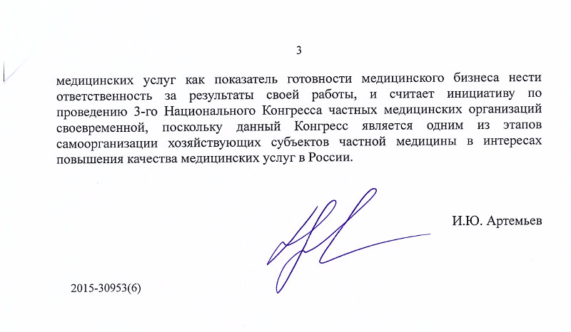 Приветствие И.Ю.Артемьева, руководителя ФАС, участникам III Национального конгресса частных медицинских организаций