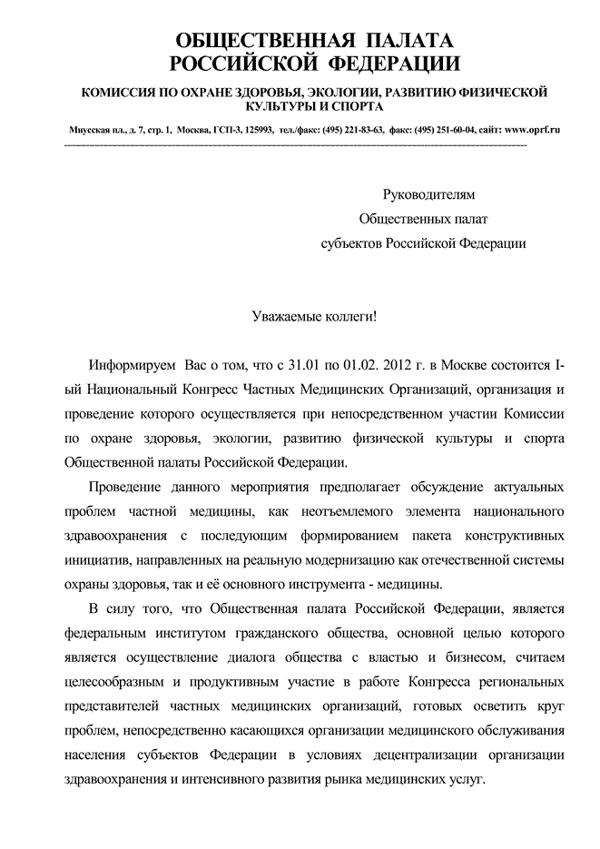 Общественная палата поддерживает I Национальный конгресс