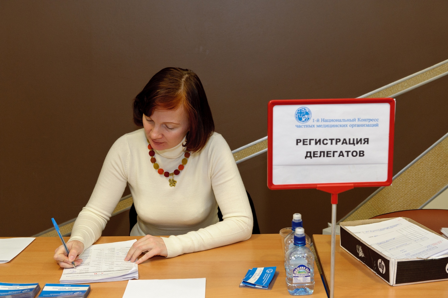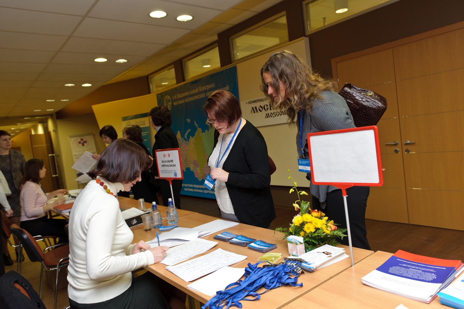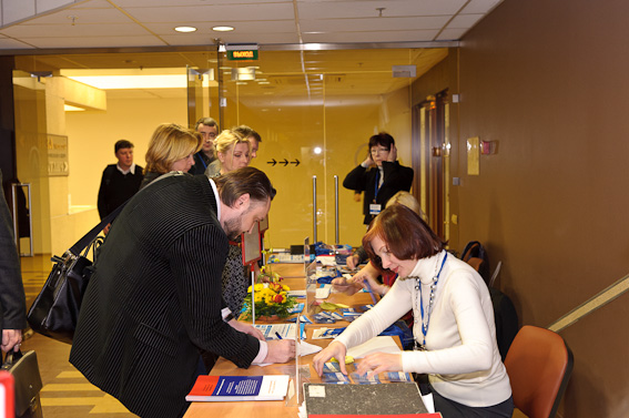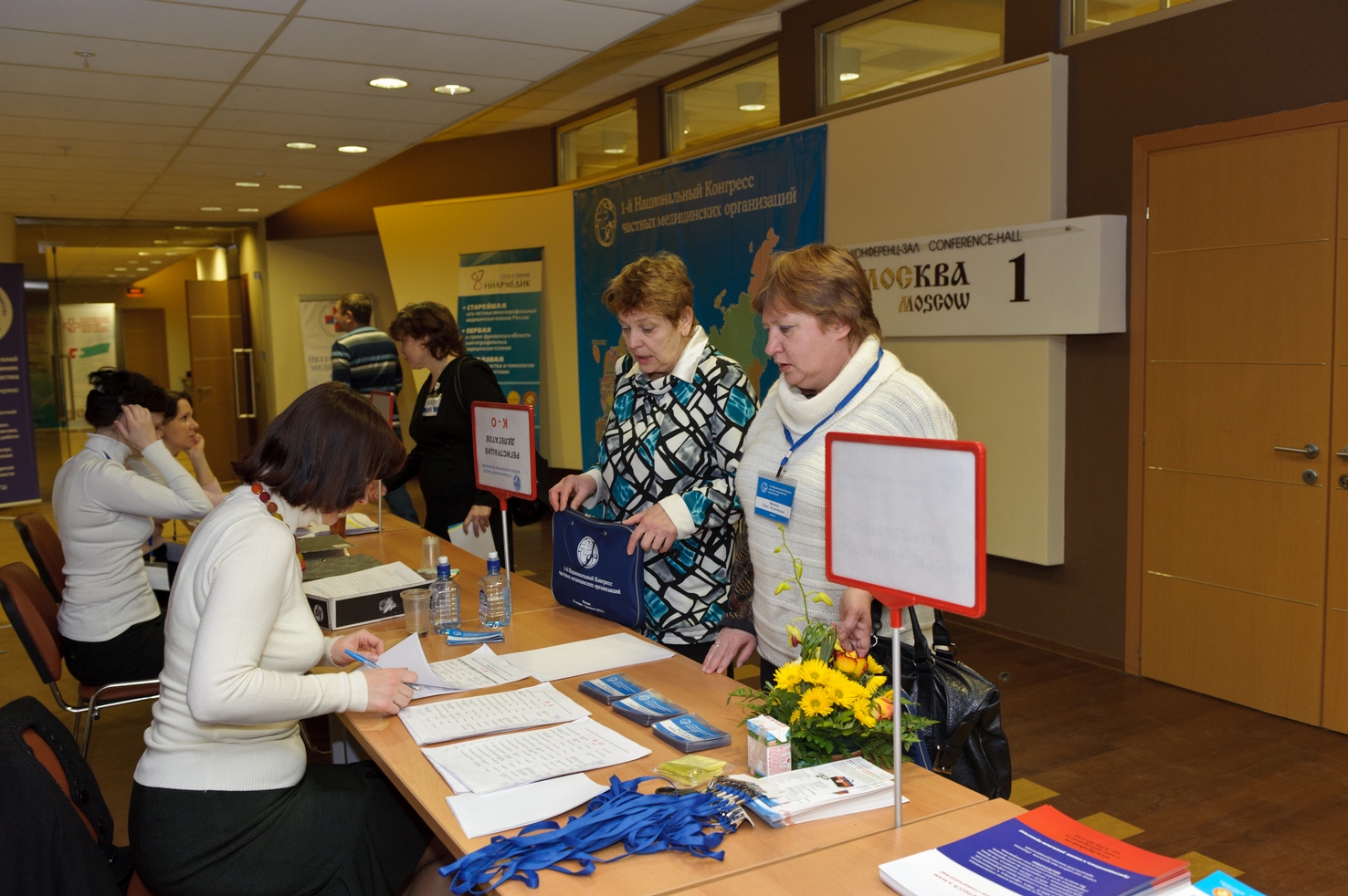Первые участники конгресса заполняют зал и фотографируются