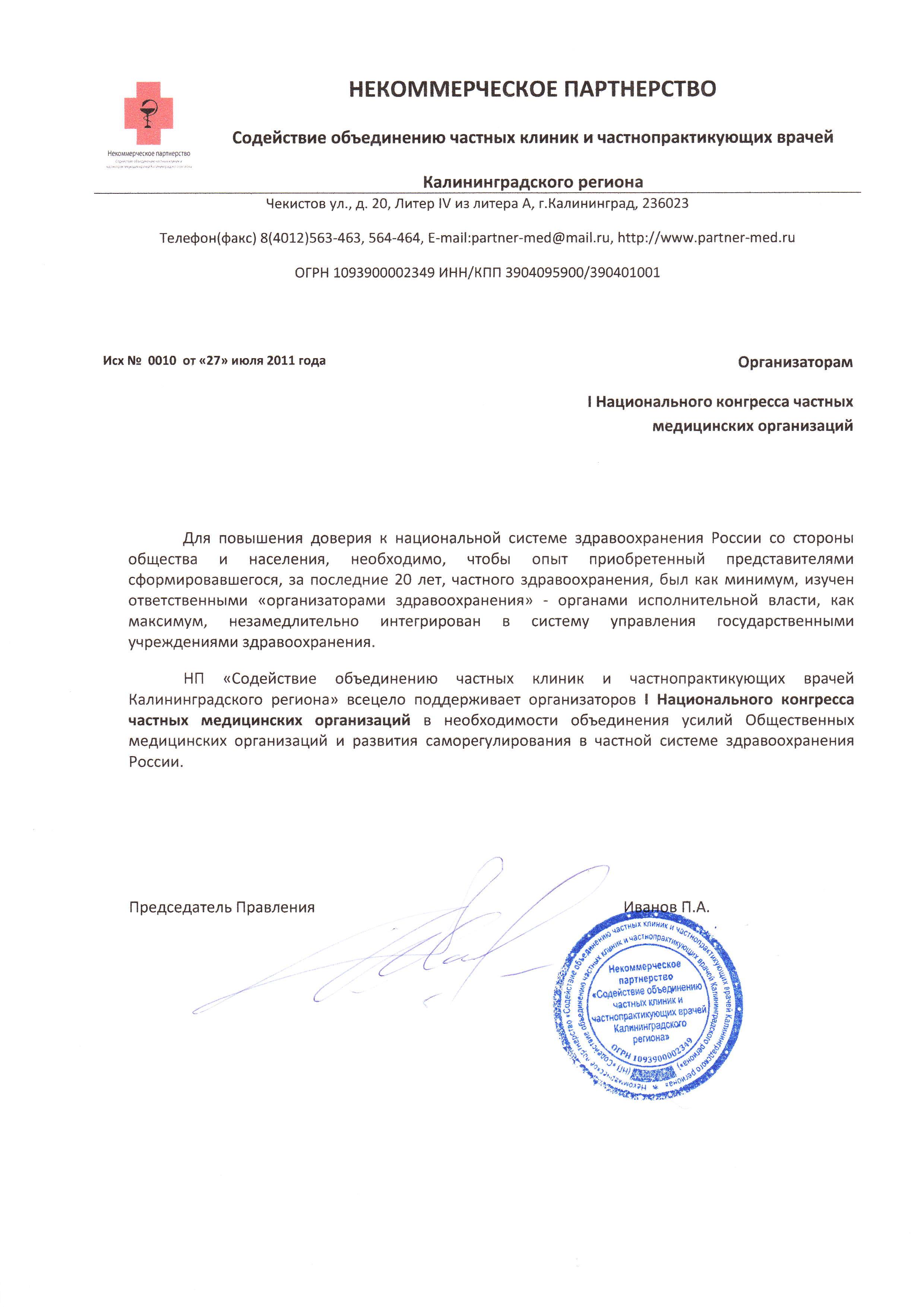Некоммерческое партнерство Содействие объединению частных клиник и частнопрактикующих врачей Калининградского региона