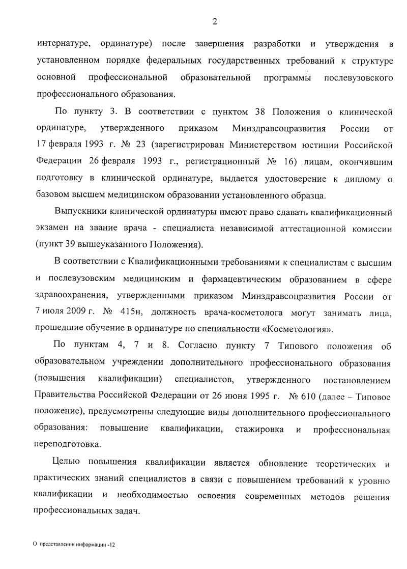1. Требование о получении квалификации «врач-косметолог» всеми врачами-дерматовенерологами, выполняющими работы и услуги по косметологии, является необоснованным и может привести к ограничению конкуренции в сфере здравоохранения поскольку: