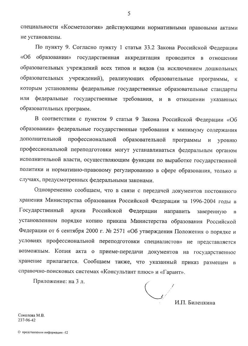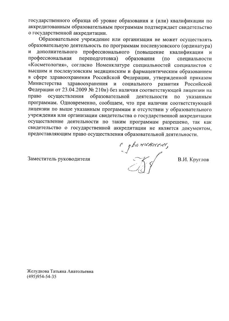 2) отсутствуют образовательные учреждения, аккредитованные по программам переподготовки и повышения квалификации по специальности «Косметология»;