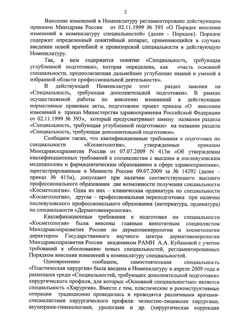 2) запрет врачам-дерматовенерологам, врачам-хирургам, врачам челюстно-лицевой хирурги выполнять работы и услуги по косметологии терапевтической и косметологии хирургической до окончания срока действия свидетельства о повышении квалификации государственного образца;