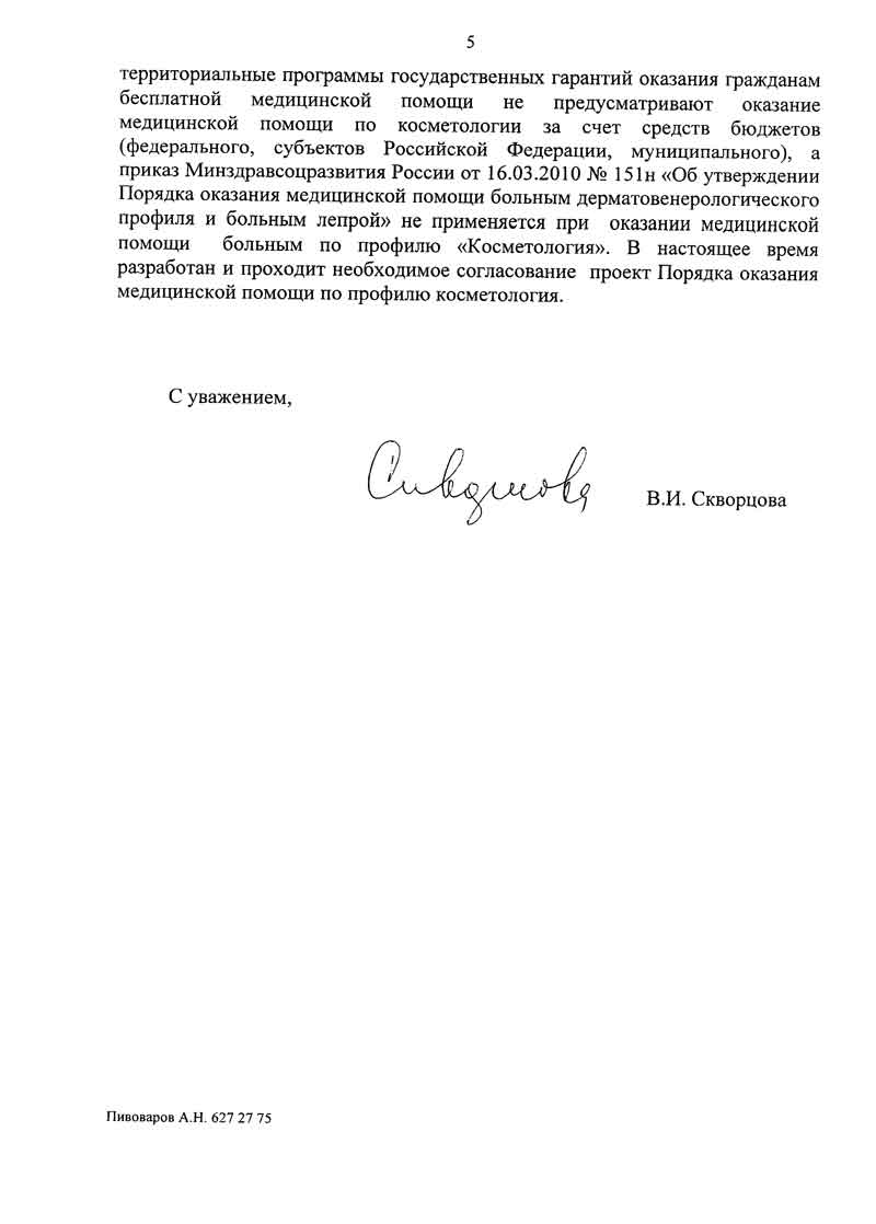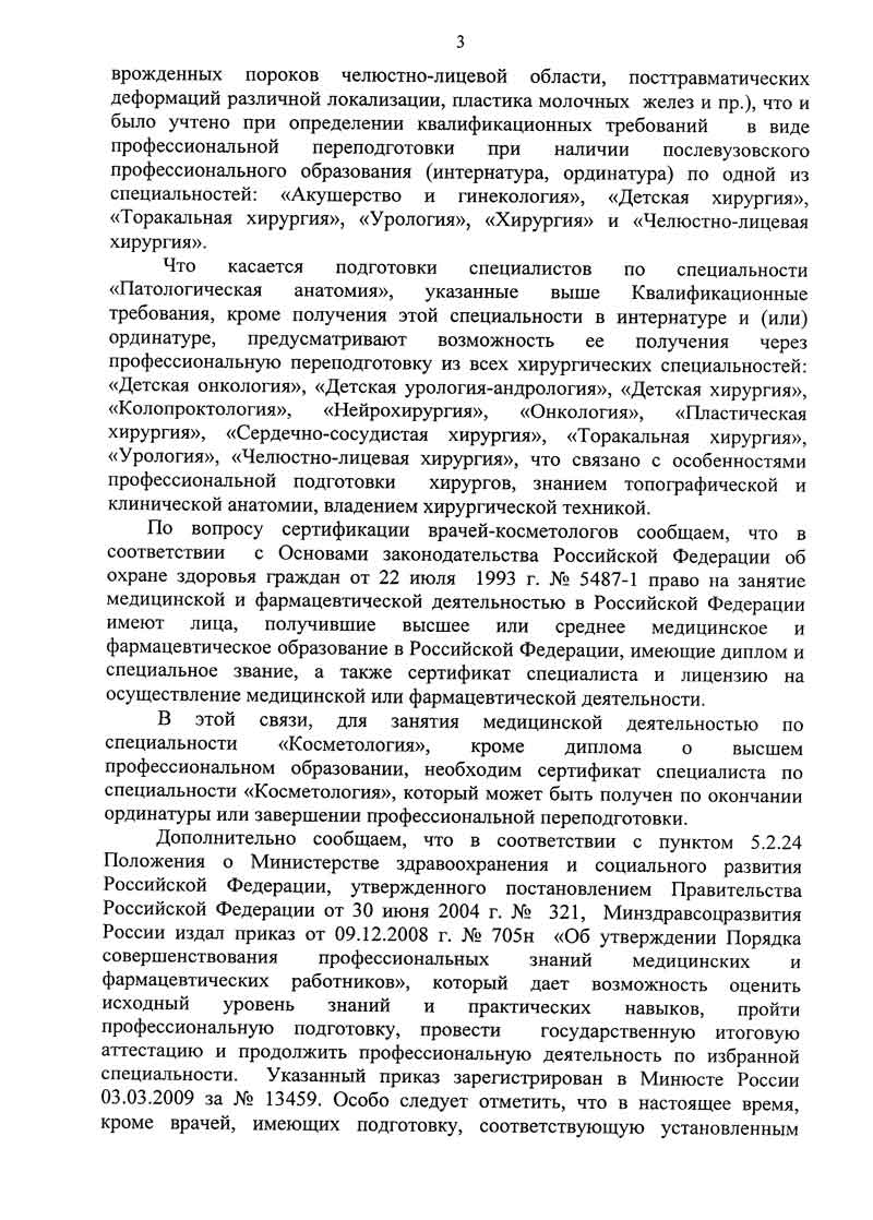 3) Отсутствует Порядок оказания медицинской помощи по профилю косметология.