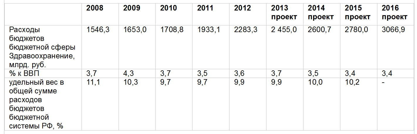 Государственные расходы на здравоохранение в России по отношению к ВВП в 3 раза меньше расходов ведущих европейских государств. США, являющимся «чем-пионом мира» в частном медицинском страховании, расходует на здравоохранение 17,6% ВВП. Странами с самыми высокими уровнями расходов на здравоохранение на душу населения являются главным образом страны Американского и Европейского регионов ВОЗ.
