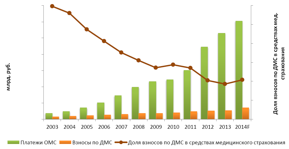Рис. Динамика средств медицинского страхования в России Источник: Источник: Эксперт РА по данным ФСФР