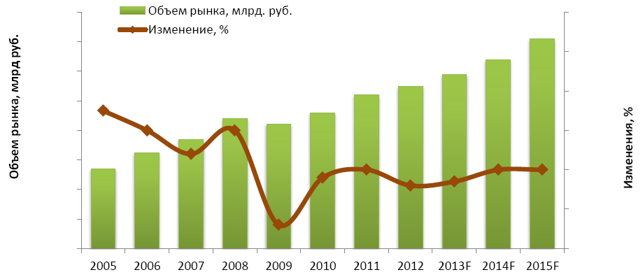 0Выдержки из аналитического обзора РБК. С 2002 года за 6 лет рынок вырос фактически в 4 раза. Темп роста составлял более 20% в год