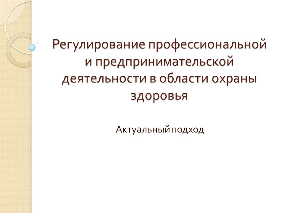 Презентация Регулирование профессиональной и предпринимательской деятельности в области охраны здоровья