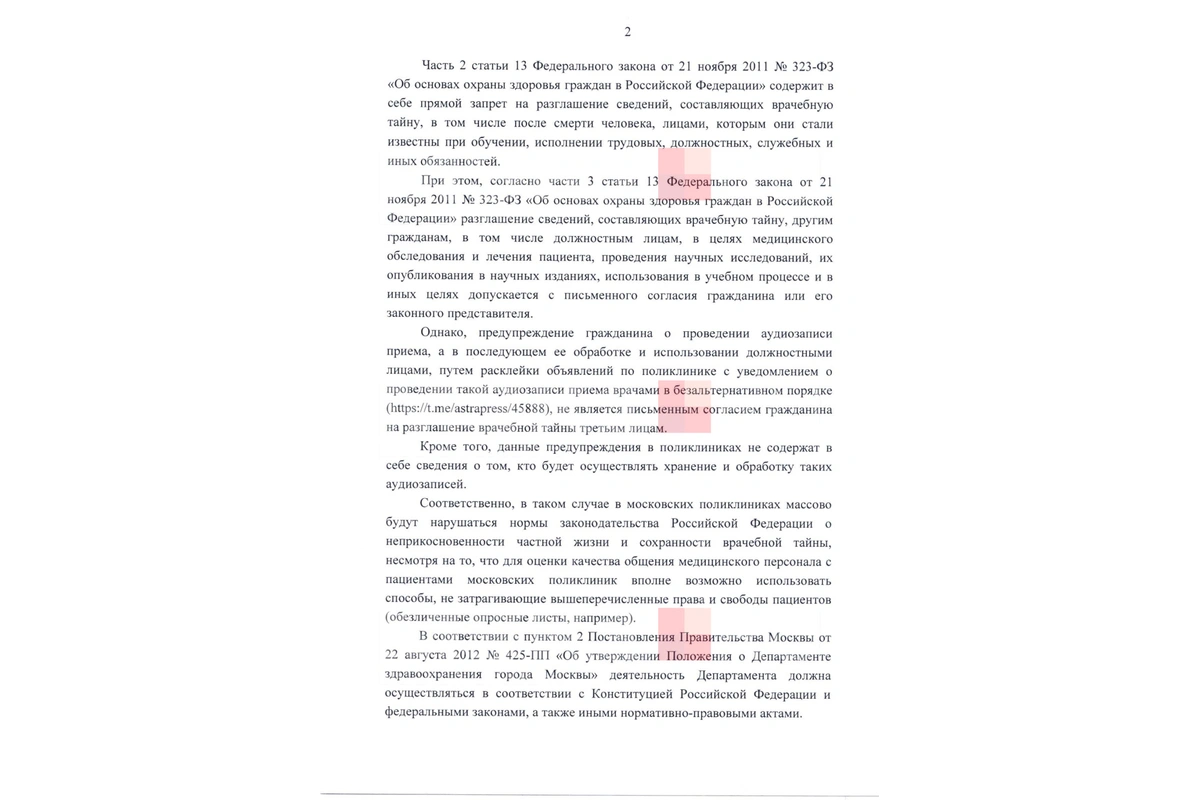 У прокуратуры потребовали отменить решение депздрава Москвы прослушивать врачей при приеме пациентов в поликлиниках