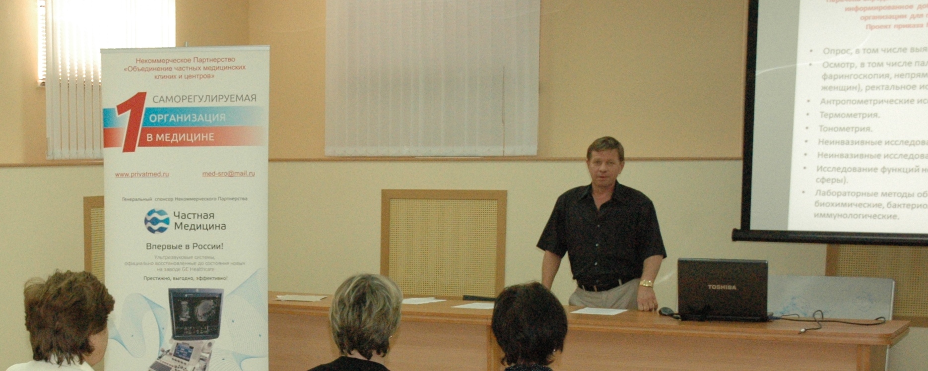 Ведущий семинара, исполнительный директор СРО НП «Объединение частных медицинских клиник и центров» Сергей Лазарев, в доходчивой форме объяснил преимущества объединения СРО, значение стандартов и правил, а также ответил на вопросы участников семинара.