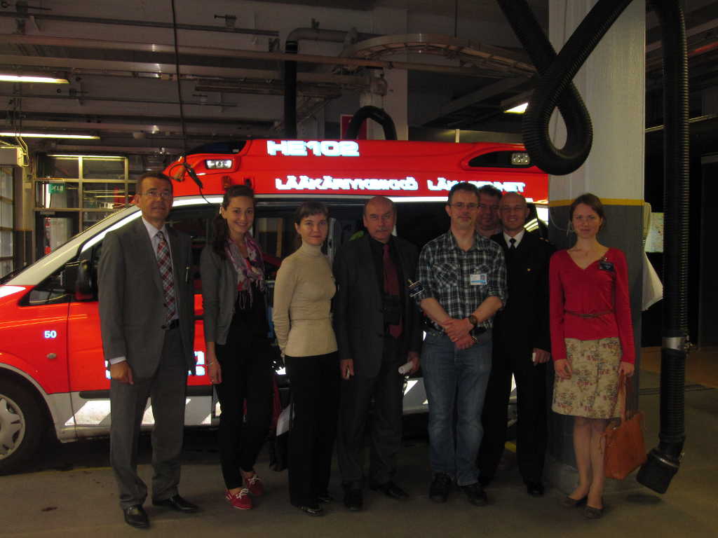 Второй день нашего визита был посвящен ознакомлению с работой центра неотложного реагирования Финляндии. Для российской делегации было очень интересно побывать в таком центре и узнать, что он многофункционален. И включает в себя не только работу службы скорой медицинской помощи, но и является пожарной станцией и сюда же поступают звонки по вызову полиции. Люди, работающие операторами в таком центре и принимающие звонки от населения, проходят специальное обучения в течение двух лет. Поражает продуманность и строгое соблюдение порядка оказания неотложной медицинской помощи, разнообразие по оснащенности машин неотложной медицинской помощи и тот факт, что пожарные машины оснащены дополнительно всем медицинским оборудованием. Персонал, работающий по неотложным вызовам, работает одинаковое количество часов как на машинах скорой помощи так и на пожарных машинах, а следовательно в любом случае, независимо от того какая машина приедет первой, медицинская помощь будет оказана быстро и профессионально. Высоко развиты и широко применяются IT- технологии. При оказании медицинской помощи, проведении диагностических мероприятий на месте, все данные передаются, как в центр где их контролирует врач, так и в госпиталь куда планируют привезти пациента. Таким образом, врачи, ожидающие больного, к его прибытию полностью ориентируются в ситуации и готовы максимально быстро и грамотно оказать госпитальный этап неотложной помощи. Такая организация мероприятий исключает потерю времени, которая может в неотложной ситуации привести к неблагоприятному исходу.